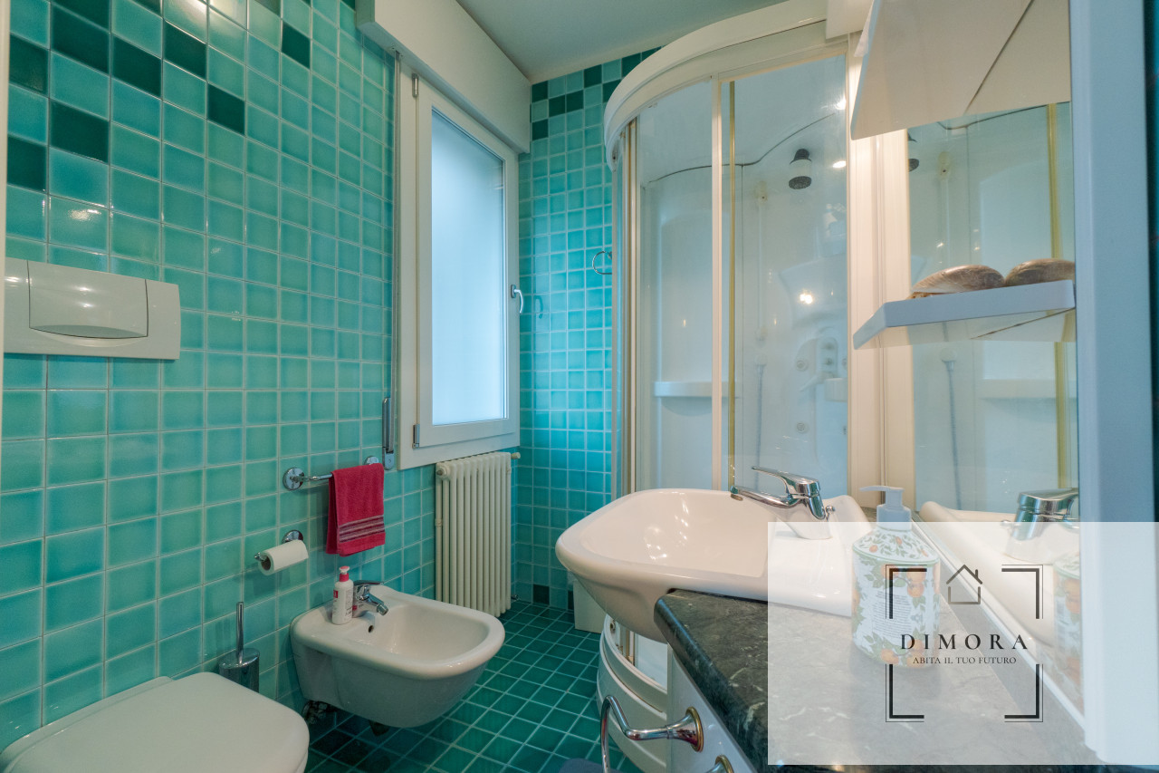 All’interno: zona giorno di circa 50 mq, due bagni in totale (uno completamente rifatto), ripostiglio/lavanderia, due camere — una matrimoniale e una doppia con bagno padronale — e un grande disimpegno perfetto per armadi e funzionalità.